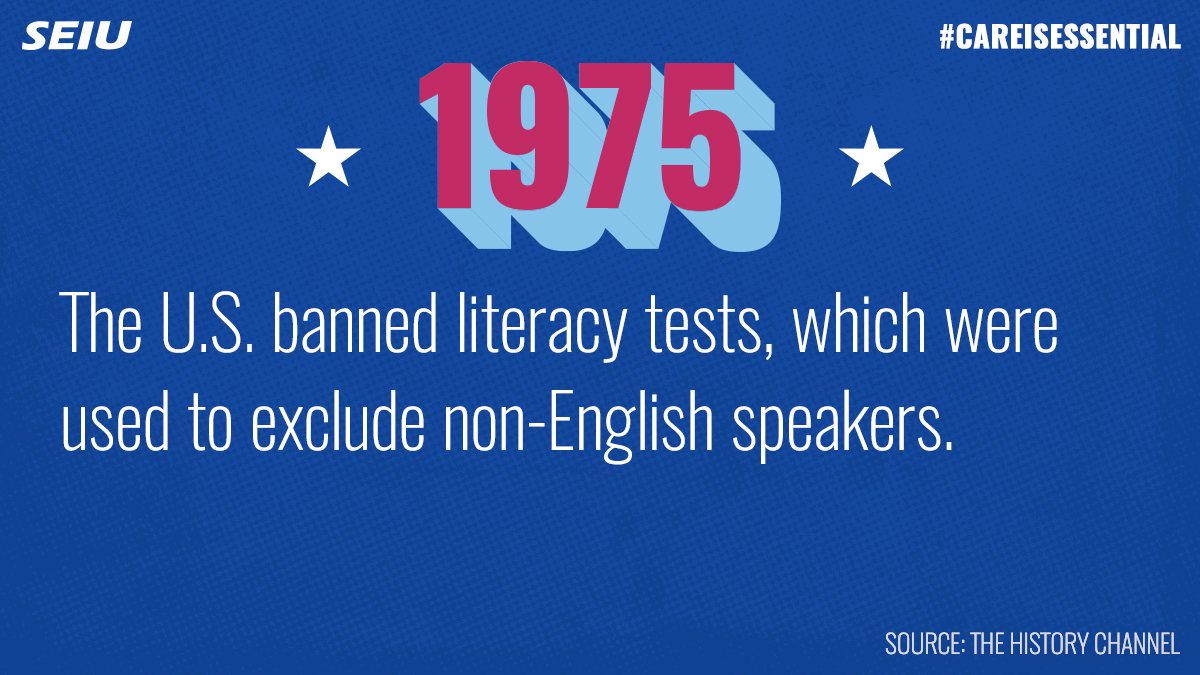 In 1975, literacy tests were repealed for non-English speaking citizens that had been disenfranchised from voting, especially Latinx and AAPI persons. Now, registration and voting documents must be provided in languages besides English.