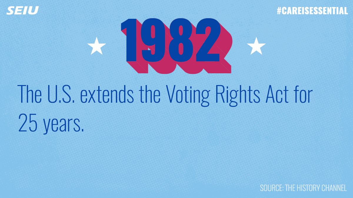 In 1982, special provisions from the Voting Rights Act were set to expire. After push back from voters, it was renewed for 25 more years. The act also introduced majority minority districts so communities of color could be represented by someone from their community.