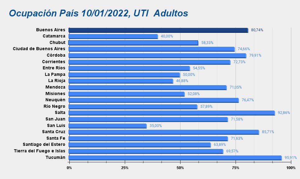 🟨Desde el 13/12/21 al 10/01/22 la ocupación creció del 4% al 22% (subió un 500%)