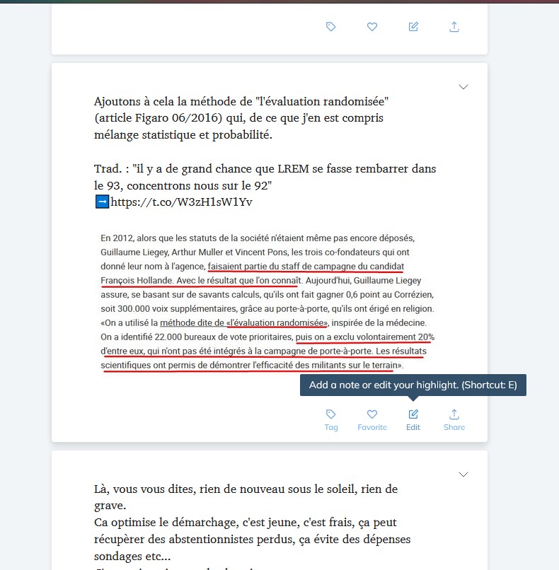 - pas d'aperçu d'article ou d'intégration de tweets ext. readwise.io