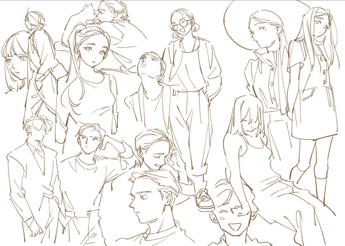 (2020) anyway with time its easier to figure out where to simplify ur lines/figure/shapes and what i can do now is the combination of ref studies and drawing characters on my own for gestures/expressions and so