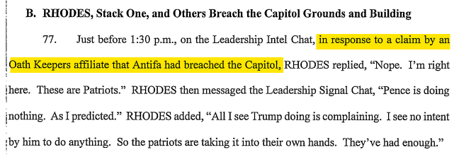 While some of the Oath Keepers leadership personally led the mob in storming the Capitol, others wondered if it was really Antifa. It's what @noturtlesoup17 was saying.