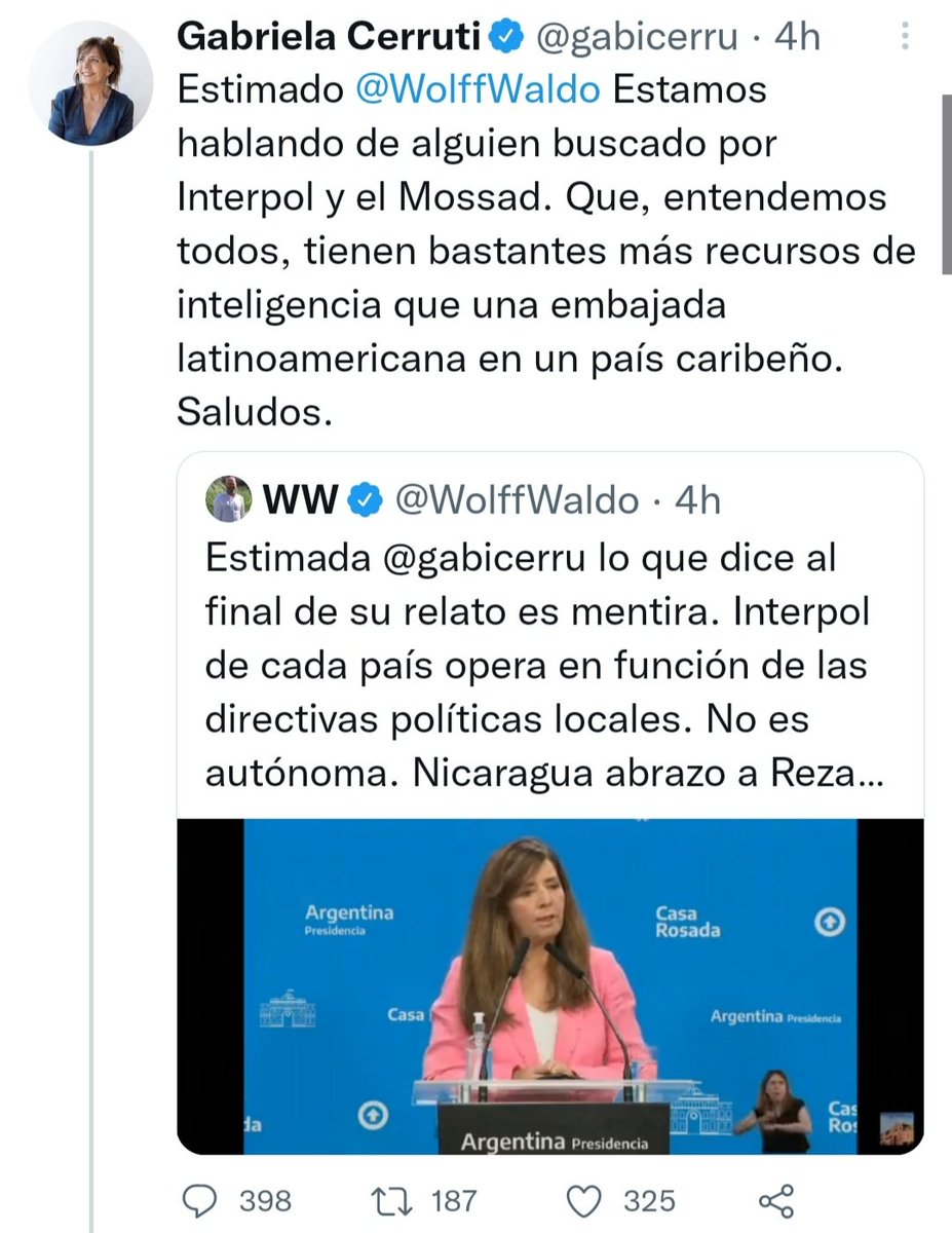 Por lo tanto, la vocera del gobierno desconoce cómodo funciona Interpol (habiendo tenido el peor ataque en territorio nacional) y encima acusa que es buscado por Israel y el Mossad cuando esto NO es así.