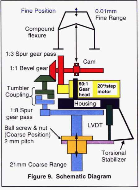 It shows how the motor can turn the red shaft (and do the fine adjustments) without needing to move the blue shaft (unless required).