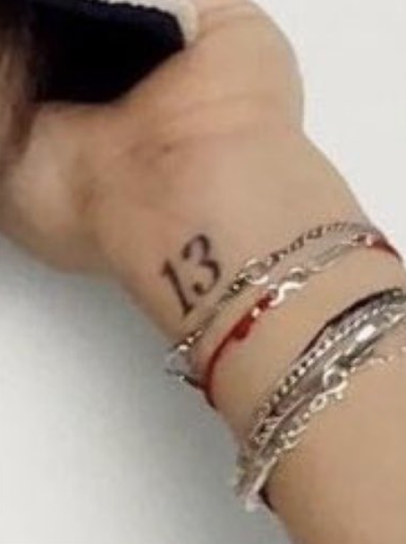 Mais um detalhe: tanto os brincos quanto o casaco trazem o número 13, gravado com a mesma fonte da tatuagem do #JIMIN