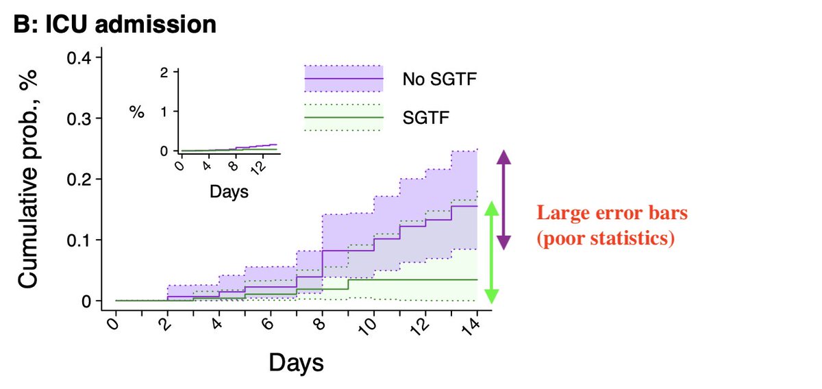 The study quoted treats this using a dynamic statistical (Cox) model but this doesn’t fix the limited data availability, whose analysis is limited to 14 days after infection. 2/