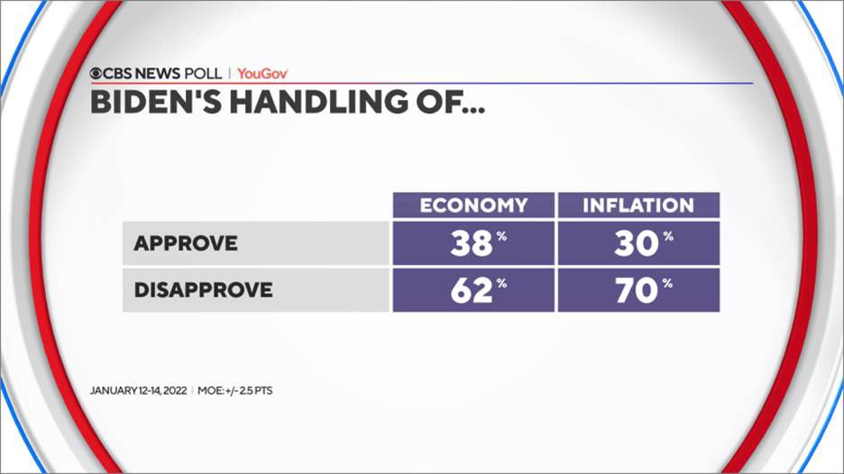 His rating for handling the economy today is a mere 38%, and about half who think it’s bad blame @POTUS’s policies. Even more blame larger forces like inflation and supply chain issues.