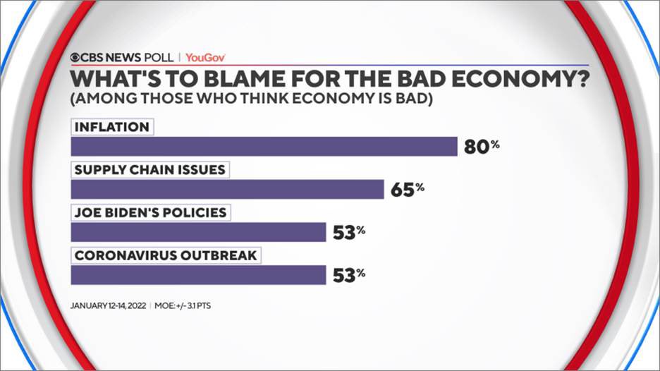 WHY IS THE ECONOMY IN BAD SHAPE? Those who think so blame inflation, supply chain issues, and the coronavirus outbreak along with @POTUS’s policies.