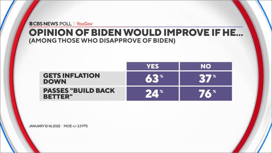 Detractors say they’d think better of Biden if he manages to get inflation down – and say so at more than twice the rate than if the Build Back Better bill passes- or voting rights, for that matter.