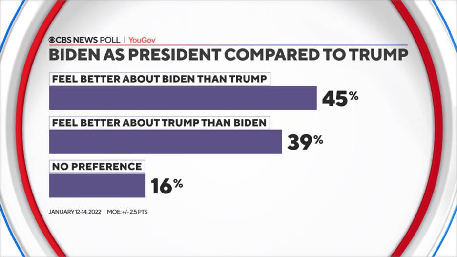 LITTLE BIDEN BUYERS’ REMORSE: About 9 in 10 Biden voters still feel better about having him as president than Trump. Even among Biden voters who feel “disappointed” or “frustrated” about his presidency, most feel better about having him in office than they felt about Trump.