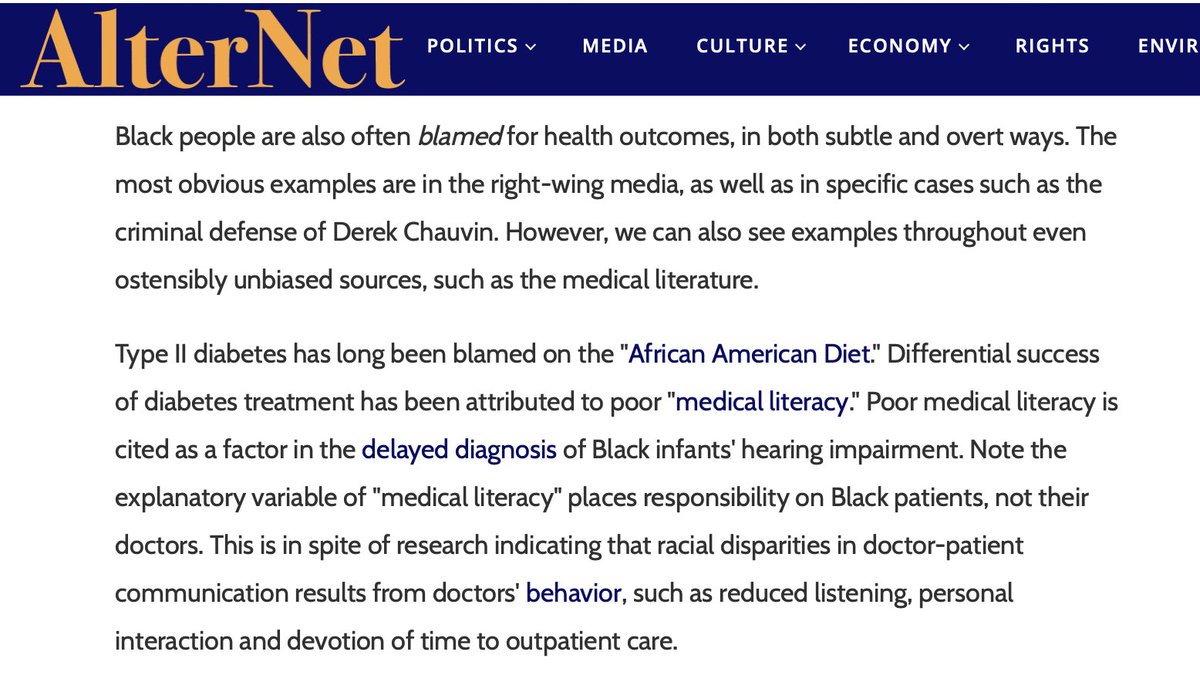 One particularly horrific example of medical racism is kidney health. Black people are less likely to be referred to the transplant list, spend longer on the list, & are more likely to undergo limb amputation than white peers w/ the same disease profile alternet.org/2021/04/george…