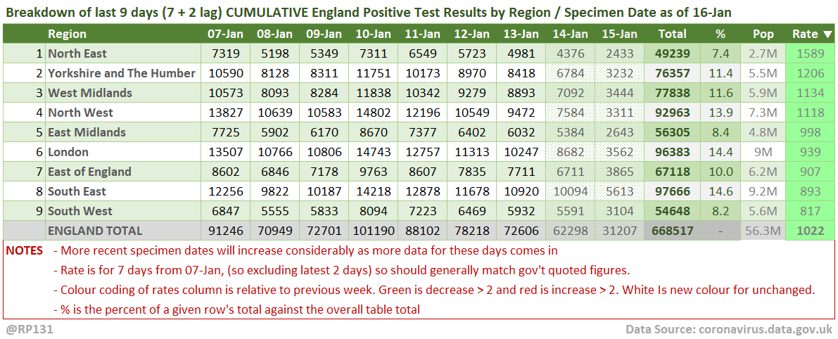 Overall England is DOWN 21% on previous Thursday and day-1 lateral flow positives are also down by 16%.