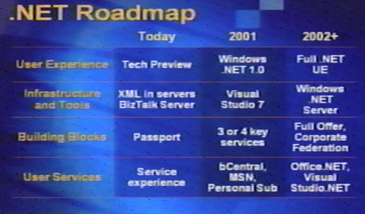 8/ Hearing feedback about "when will it happen" from past events, this event featured very specific slides outlining a product roadmap. While the event was Forum 2000 for NGWS, NGWS was renamed to .NET, which was also the name of products kind of. Yeah it was complicated.