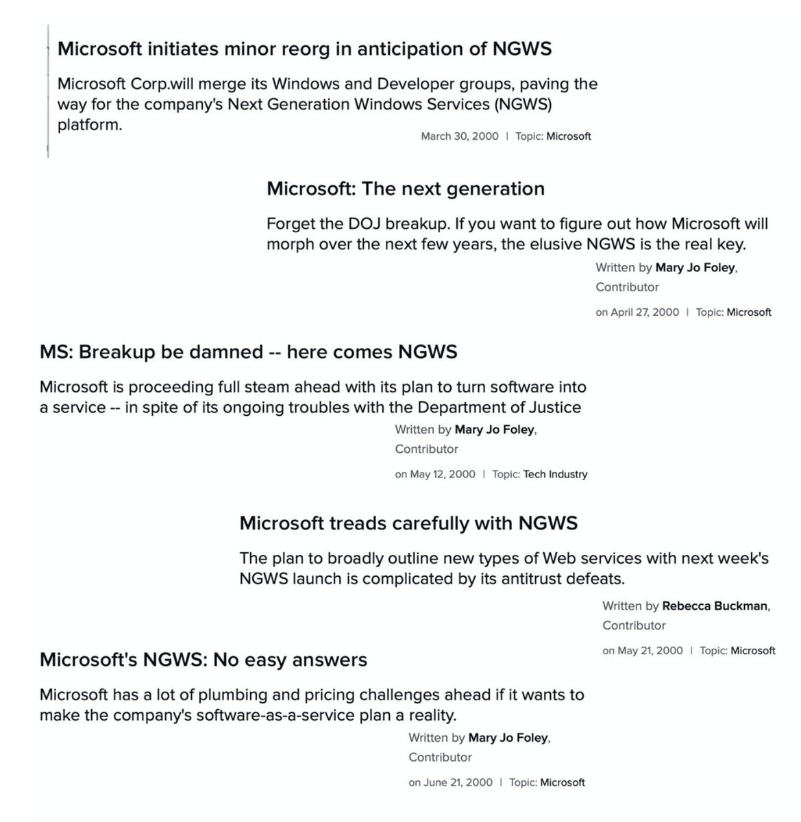 3/ "Disruption" was everywhere and "everything". When faced with the need for a (big) plan, the Windows team loved a good "strategy day" for the press. BillG kicked off "Next Generation Windows Services" as CSA with a bunch of offsites, working groups, and meetings.