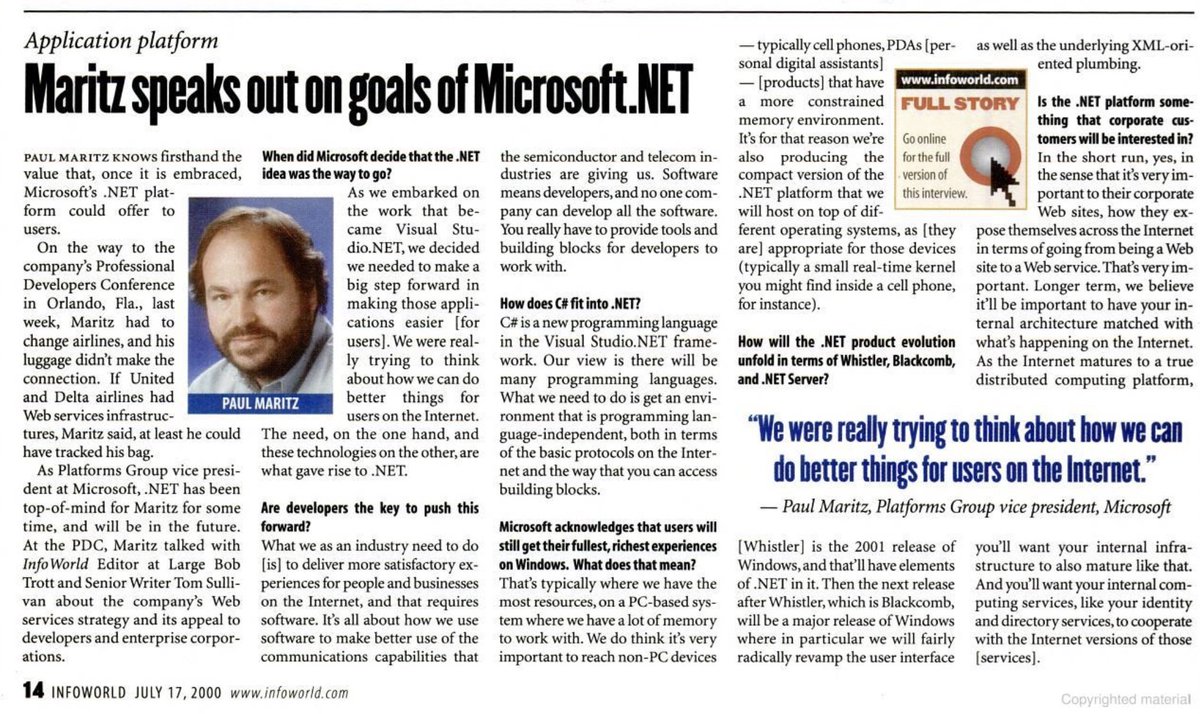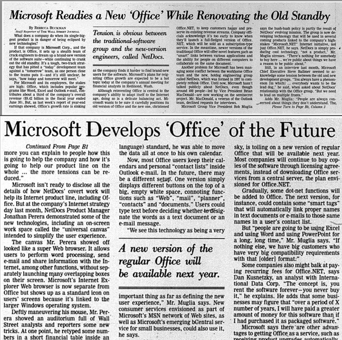 9/ If you look carefully there was something called "Office.NET". I was relatively new SVP of Office but that wasn't on our team. What was it? Where did it come from? Oh my—competing efforts? Not really. Well not a competition at all. But still the press…