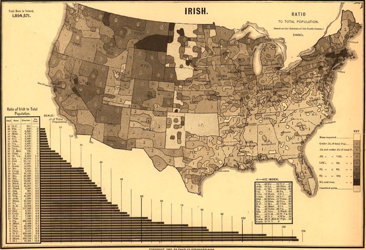 In 1880 there were more Irish-born people living in New York state (499,500) than Co. Dublin (418,900) and Co. Cork (495,600). Total Irish-born population in the United States was 1.86 million. loc.gov/resource/g3701…