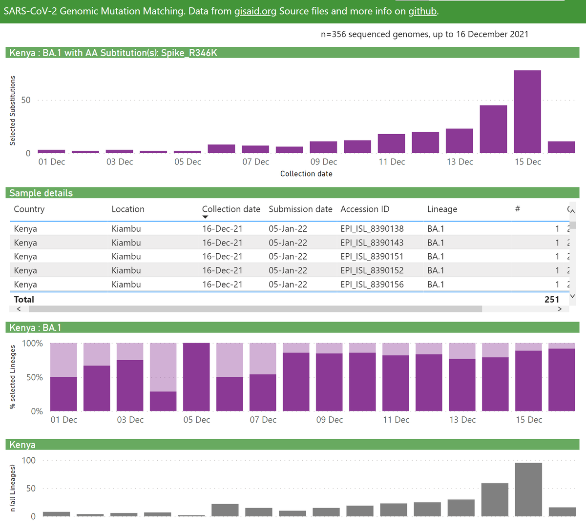 Kenya's Omicron outbreak has predominantly been BA.1 with the Spike R346K mutation, recently at 90-100% (of all BA.1 samples).