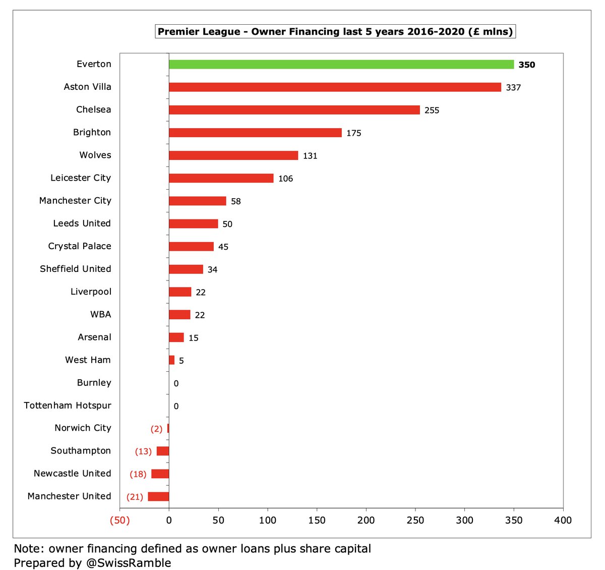 This profligate approach has been essentially funded by Moshiri. Including £100m capital injections and loans in 2020/21, I reckon this now adds up to a hefty £450m. In fact, in the five years up to 2020, #EFC £350m owner funding was the highest in the Premier League.
