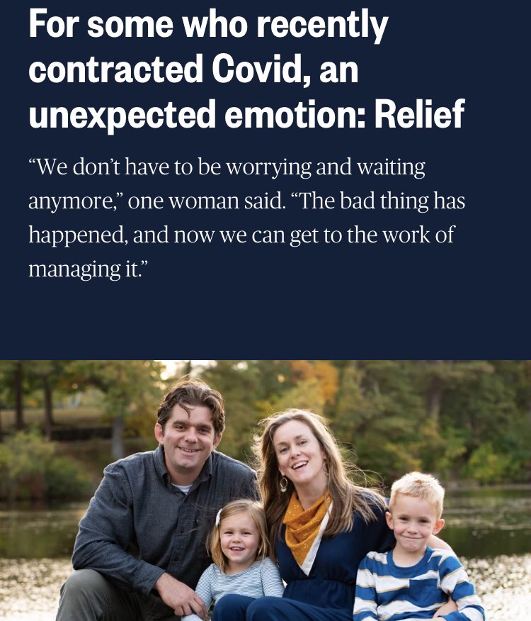 “Some with recent Covid diagnoses are finding that contracting the illness they worked so hard to dodge for so long has brought them an unexpected reprieve from anxiety — instead of compounding it further,” @NBCNews frames this story, along with a smiling white family.