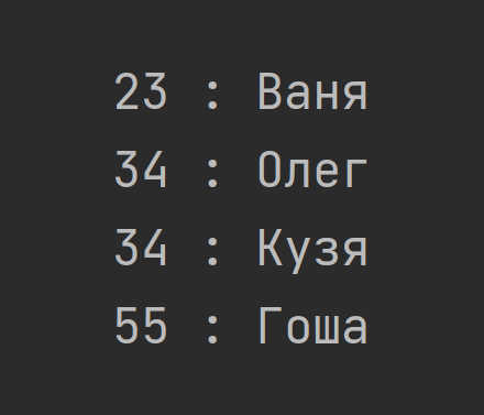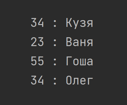 Возьмём для наглядности максимально простой вид записей, в формате [возраст : имя]