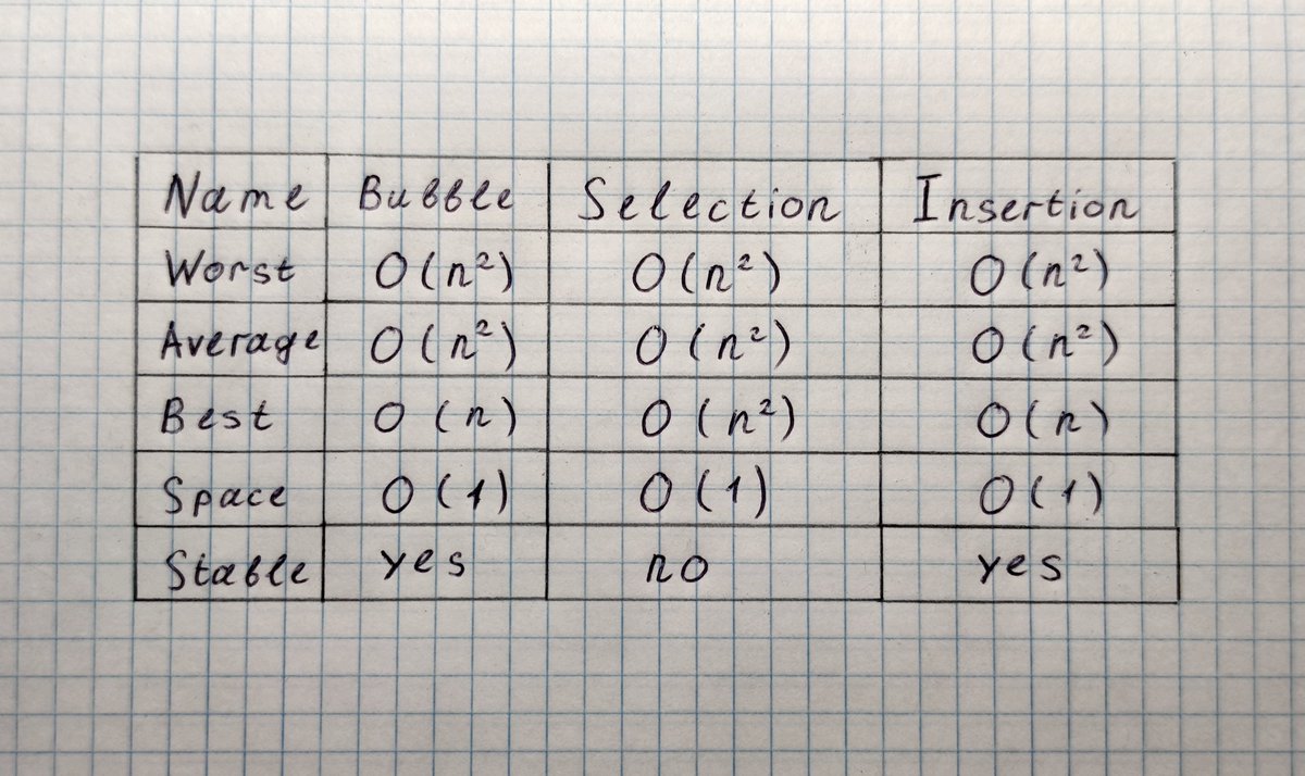 Речь пойдет о трёх самых базовых алгоритмах сортировки — о Bubble Sort, Insertion Sort и Selection Sort.