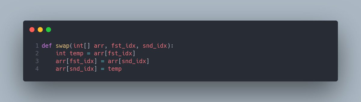 Чуть больше контекста? Хорошо. Функция swap получает массив, и два индекса. Первым делам она сохраняет копию элемента по первому индексу (какое-то число) в отдельную переменную temp (от слова temporary, временный, очень частое сокращение, озадачивающее молодые умы).