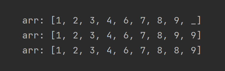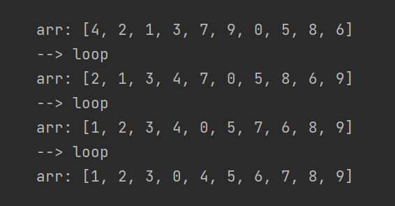 Уточню, что состояние arr показывается каждый раз в конце соответствующей итерации. Первая строчка после первой итерации (при i равным нулю), и дальше по списку.