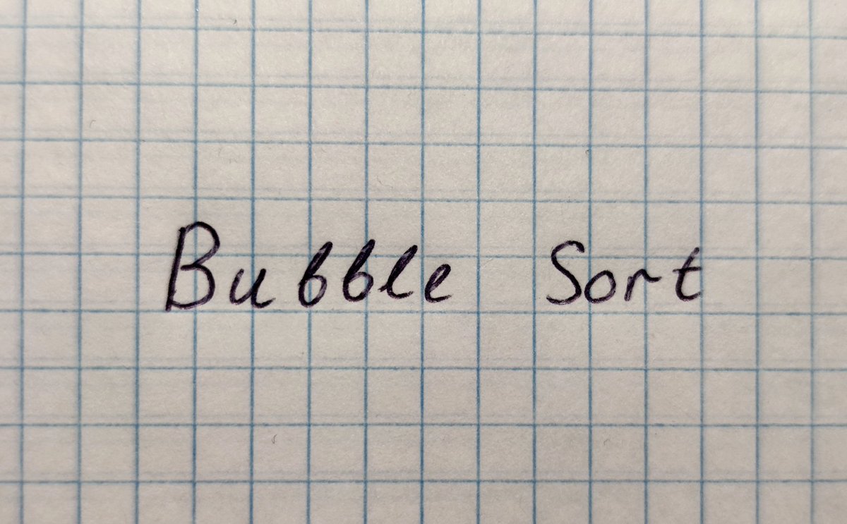 Итерацию за итерацией большие числа “всплывают” наверх, а маленькие “тонут” вниз. Кто-то давно, до нашего рождения, увидел в этом аналогию с пузырьками. Поэтому такая сортировка называется пузырьковой, или же Bubble Sort.