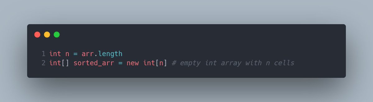 Итак, приготовления завершены, можно думать о самой сортировке. Оригинальный массив мы будем урезать шаг за шагом, а сам ответ будет выстраиваться во втором массиве. Значит, начать следует с создания пустого массива, с тем же размером, что и у оригинала.