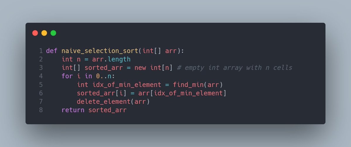 Во-вторых, за счёт поиска минимально элемента (ест O(n) времени) в каждом цикле (n раз), мы получаем как Worst Case, так и Best Case O(n^2). Это не хорошо.