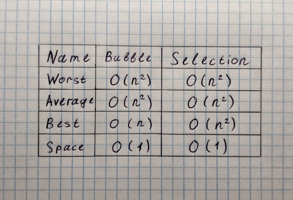 Выходит, что Bubble Sort всегда лучше Selection Sort по скорости, из-за Best Case O(n)? Тут, как в одном известном анекдоте, есть один нюанс. В конце треда мы поговорим про представленные алгоритмы и сравним те их аспекты, которые не учитываются в О-Нотации.