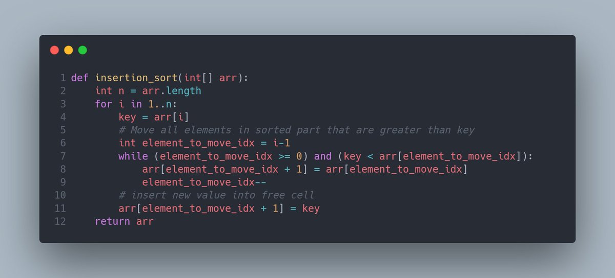 Предлагаю теперь взглянуть на код заветной сортировки вставками!