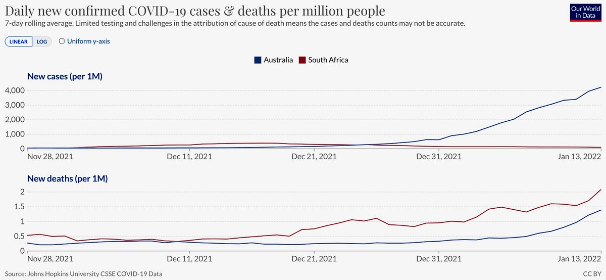 It looks like my prediction is on its way to coming true. But the example of S Africa suggests that the peak in deaths may be greatly delayed following the Omicron case numbers peaking