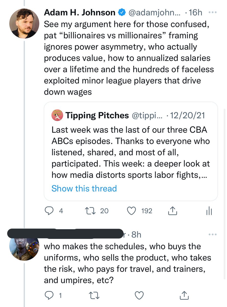 To be clear the only plausible thing “owners” can do players can’t do is have lots of initial capital to buy the team in the first place but this isn’t a skill this is known as Just Being Rich. And also to be clear, industries exempt from anti-trust and labor laws are not “risky”