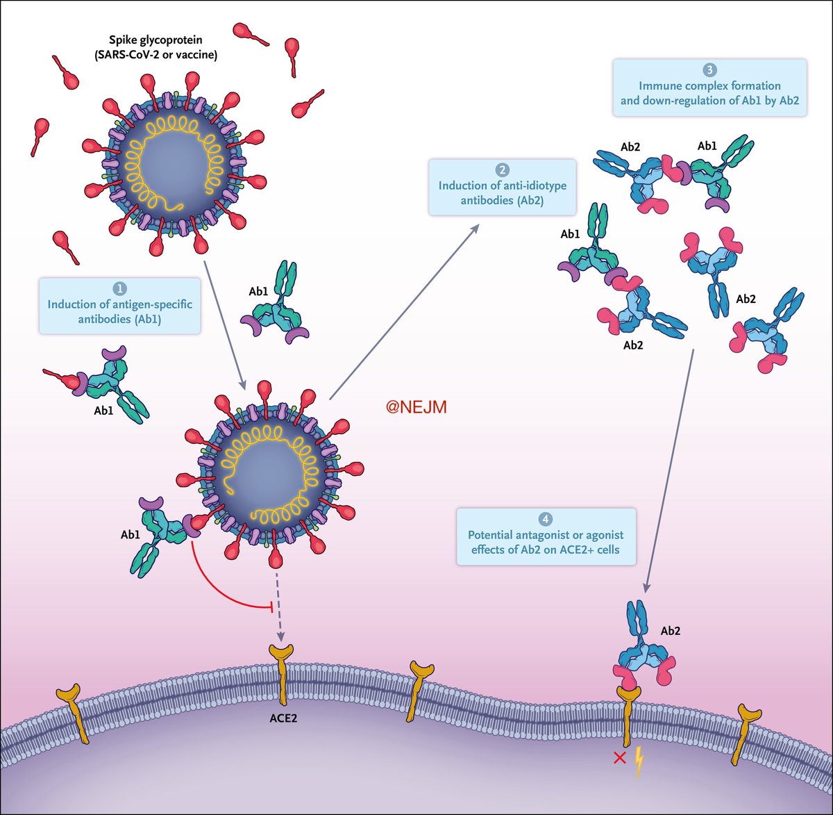 Especialmente si pensamos que podríamos tener en un anticuerpo anti-idiotipo que podría fijarse a ECA2, por ejemplo. De comprobarse, valdrá la pena analizar la posible participación de estos en las manifestaciones de Long-COVID19. nejm.org/doi/full/10.10… 40/60