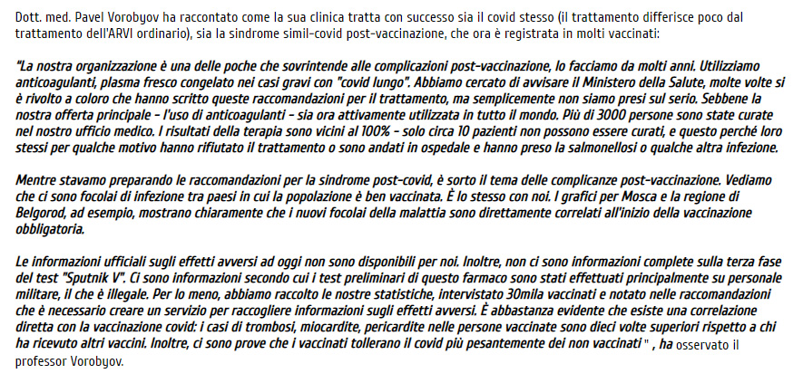 Conferenza a San Pietroburgo con numerosi scienziati ed esperti indip.: la campagna in atto in Russia e in tutto il mondo per costringere la popolazione a iniettarsi sieri sperimentali è un pericoloso sabotaggio globale privo di basi mediche: katyusha.org/view?id=17594