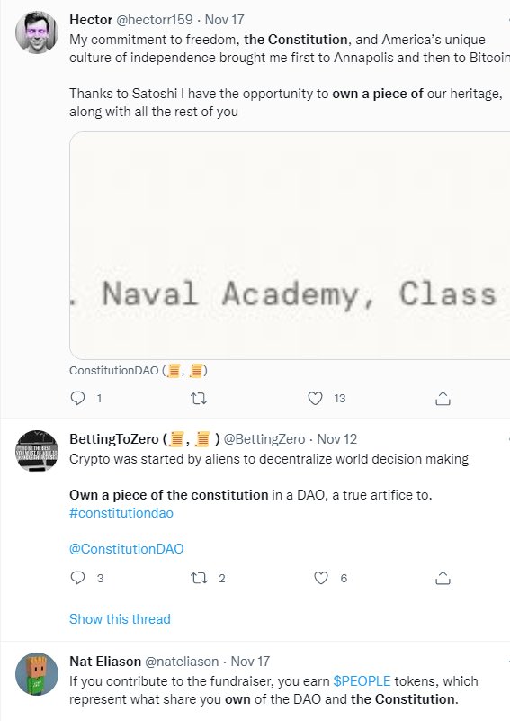 One might argue @ConstitutionDAO willfully nurtured this misunderstanding.🤔