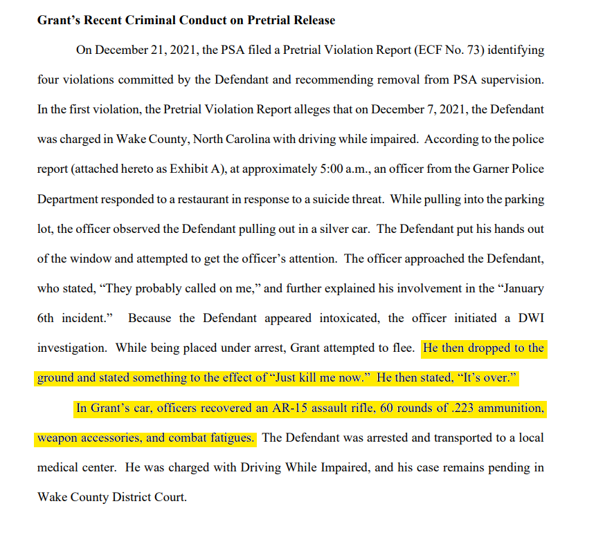 NC police arrested Grant last month for DUI, possession of an AR-15 and attempting to flee arrest. #CapitolRiot
