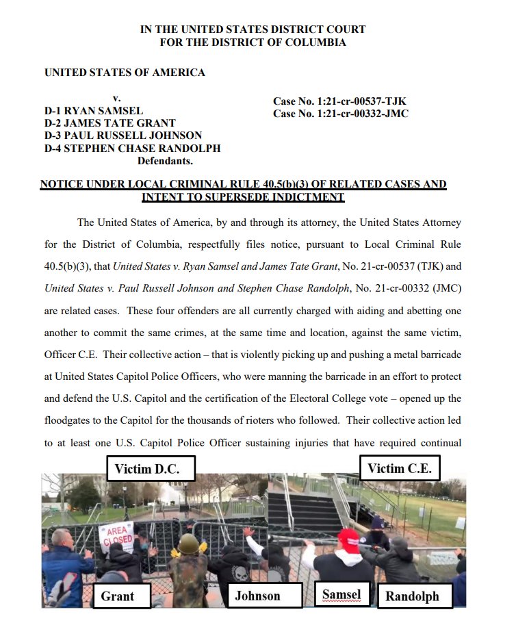 Last week, the DOJ filed notice it intends to merge their cases with two other defendants: Paul Russell Johnson and Stephen Chase Randolph. #CapitolRiot