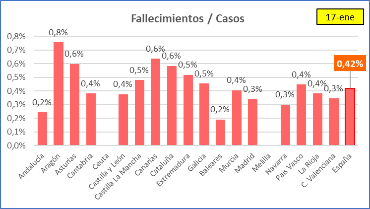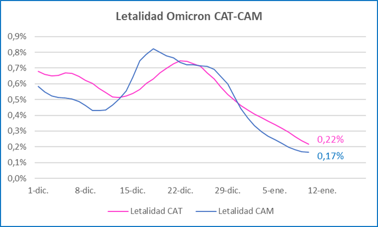 Si añadimos las muertes de MAD y CAT que faltan en los informes de Sanidad tenemos actualmente una Letalidad #Omicron ~0,4%