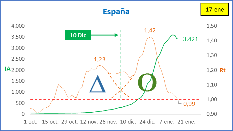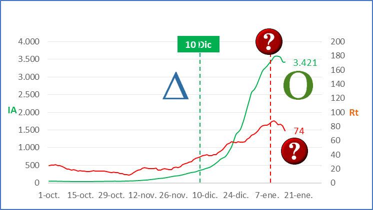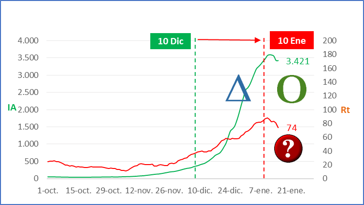 Pero el indicador de transmisión Rt sí lo muestra: cambiamos de #Delta a #Omicron el ~10D