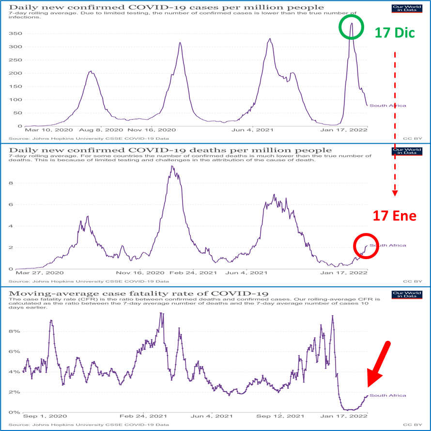 Sudáfrica está al final de su ola y nos sirve para el desfase caso-muerte