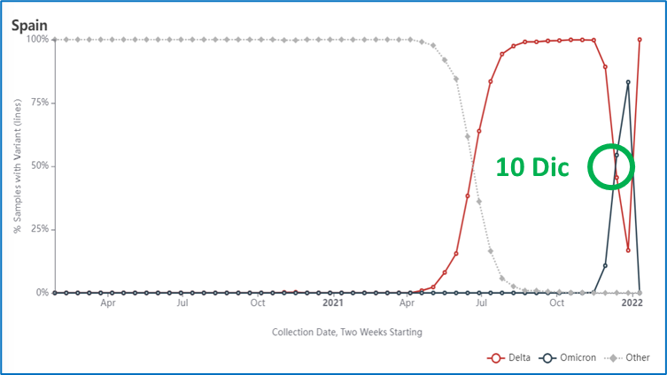 Por otra parte, la prevalencia de #Omicron superó a #Delta también el 10D coincidiendo con el criterio Rt de mi tuit anterior