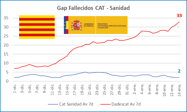 Si nos fiamos de la Generalitat @DadesCatalunya, Sanidad @sanidadgob no incluye el 90% de las muertes de Cataluña del último mes 😡
