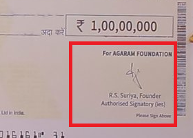 🔆 சரியான குழந்தைகளை தேர்ந்தெடுத்து தன்னார்வளர்கள் துணையுடன் சிறப்பான முறையில் படிக்க வைப்பார் என்று பொதுமக்கள் அகரம் அறக்கட்டளைக்கு நன்கொடையாக கொடுத்த பணத்தை சூர்யா தன்னுடைய திரைப்பட விளம்பரத்திற்கு பயன்படுத்தி கொண்டார். 2/5