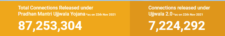 இந்த வருடம் 2021 ஆகஸ்ட் மாதம் தொடங்கபட்ட உஜ்வாலா 2.0ன் கீழ் மலைவாழ் பழங்குடியின பெண்களுக்கு மட்டும் 72 லட்சம் புதிய இணைப்புக்கள் கொடுக்கபட்டுள்ளது