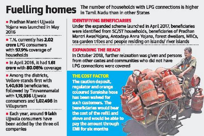 தமிழ்நாட்டில் உஜ்வாலா திட்டம் மூலமாக 32.3 லட்சம் புதிய இணைப்புக்கள் கொடுக்கபட்டுள்ளது. இங்கு மொத்த இணைப்பில் 20% உஜ்வாலா இணைப்பு 2/n