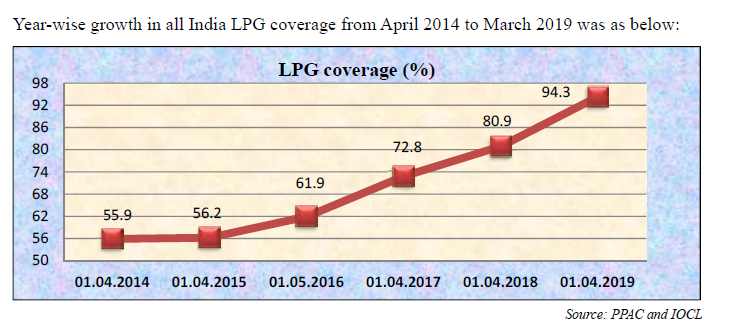 இந்தியா முழுதும் 2014ல் 55.9 % குடும்பங்களுக்கு மட்டுமே கேஸ் இணைப்புகள் இருந்தது.