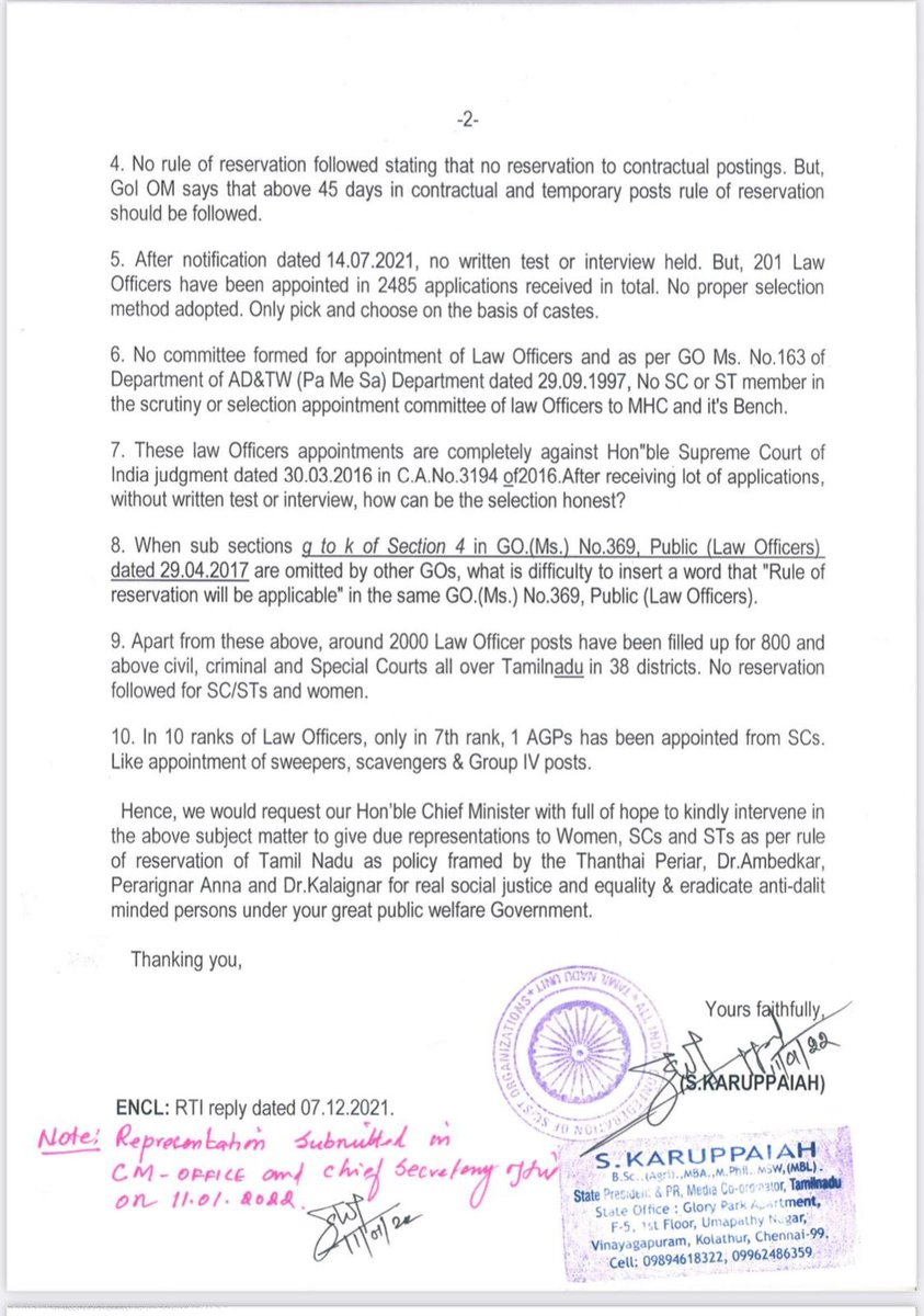 நியமனம் செய்யபட்ட 201 வழக்கறிஞர்களில் 6 பேர் மட்டுமே பட்டியலினத்தை சேர்ந்தவர்கள் 1/n #திருட்டுபொங்கல்_திமுக