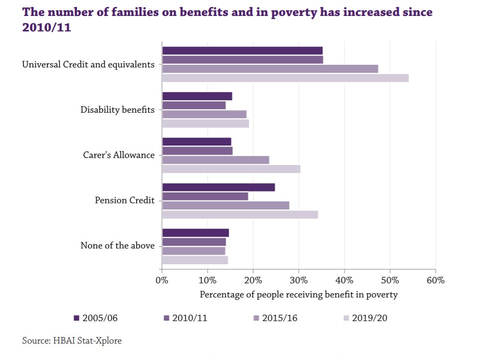 Benefit caps and freezes have started to bite hard. Well over half of universal credit recipients are now in poverty.